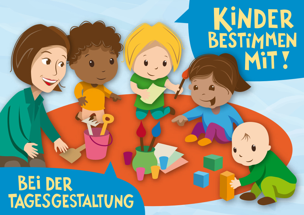 Das Plakat mit sechs verschiedenen Motiven und vielen Reflexionsfragen rund um die Beteiligung von jungen Kindern im Alltag können Sie kostenlos gegen Übernahme der Portokosten per E-Mail an t.lehmann@bvktp.de bestellen. Das Plakat gibt es nur noch in der Größe DIN A3.